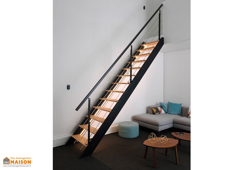 Escalier Droit En Bois Hetre Chene 290 Cm Led Rampe Alu Spark